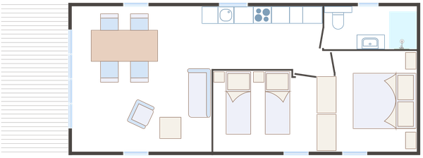 Die neuen Bungalows sind 60 qm groß und befinden sich auf unserem Campingplatz.